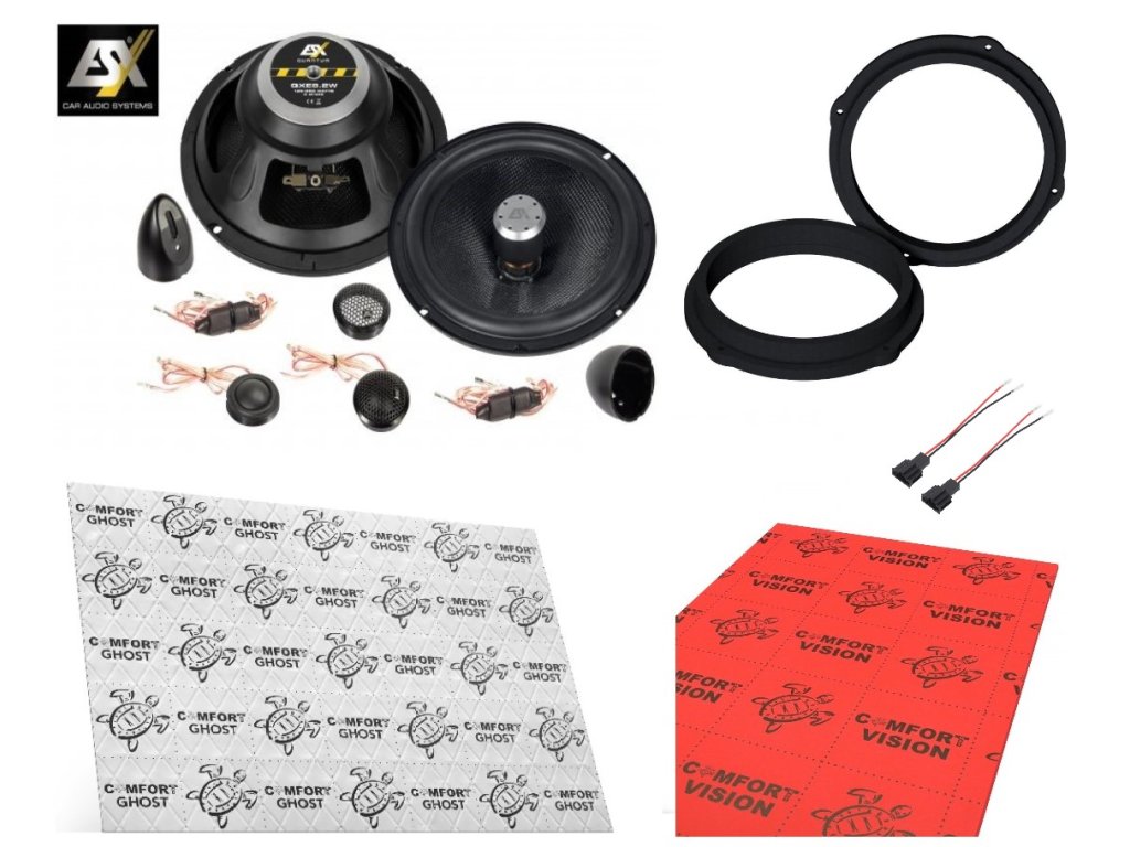 Set ESX QXE8.2C do vozidel Audi. Horká novinka od Německého výrobce autohifi ESX, který přišel na trh s 200 mm komponentními reproduktory. Neuvěřitelně vyvážené reproduktory v poměru kvalita/cena/výkon. Modelová řada QXE od společnosti ESX, je hned na druhém místě v pořadí za modelovou řadou Vision VXP PRO. Jsou vhodné na výkon ze zesilovače od 40 - 80 W RMS, ale i na výkon z továrního zesilovače. Díky svému odporu 3 Ohmy, dokáže z tovární jednotky "vyždímat" bezpečně maximum. Řada QXE byla podrobena testu v Německém časopise Car&Hifi, kde získala skvělou výslednou známku 1,3 (NEJLEPŠÍ TŘÍDA). Velikou výhodou jsou velice kompaktní kabelové výhybky pro výškové reproduktory, se kterými nemáte žádný problém při instalaci. Středobasový reproduktor je navržen tak, aby uměl zahrát spodní frekvence již od 35 Hz. Balíček pro základní vytlumení dveří, je součástí setu.