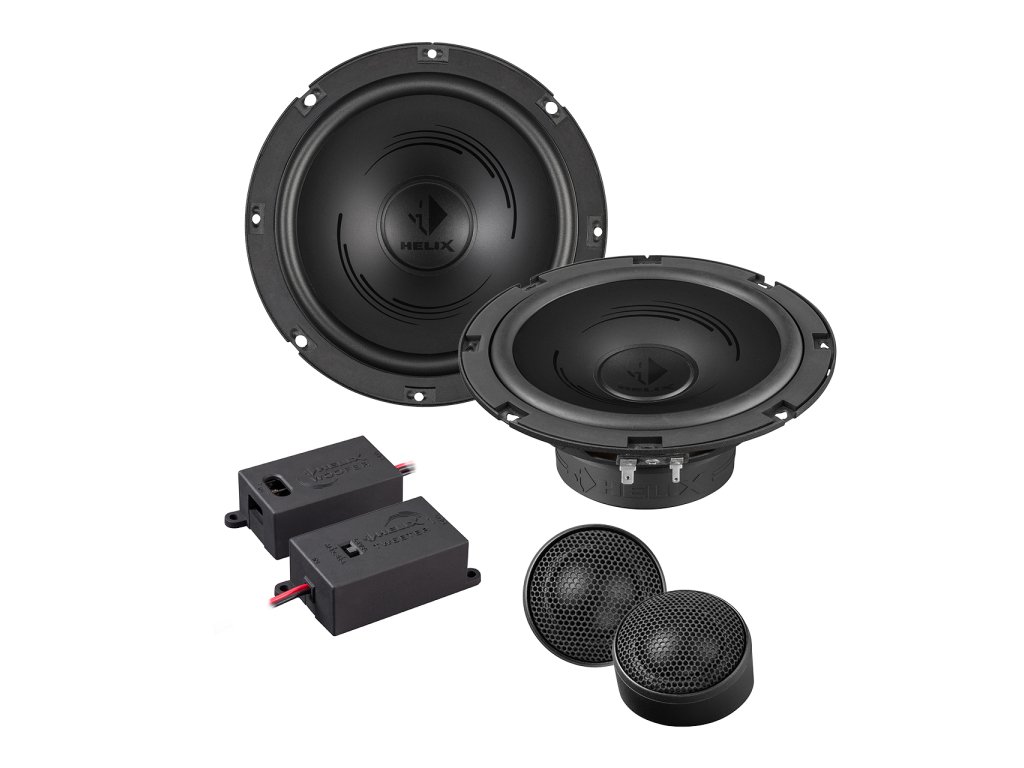- 1 pár komponentních reproduktorů Helix PF K165.2 (2x středobas, 2x výška, výhybky)