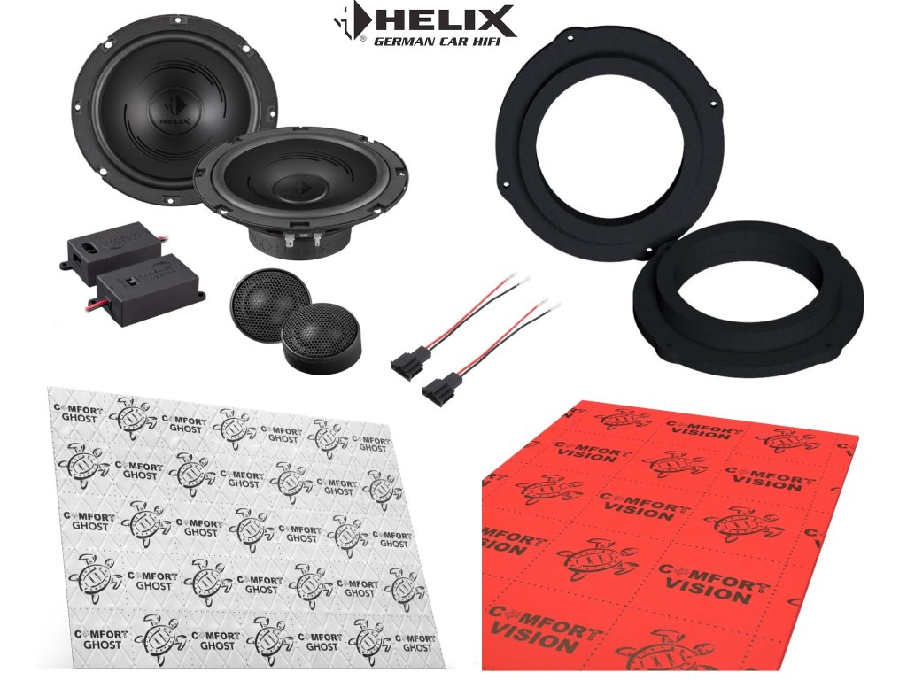 Helix PF K165.2 do vozidla Audi. Jedná se o novinku od známého Německého výrobce Helix, do instalací kde se většinou nahrazují originální reproduktory ve dveřích. Díky své 3 ohmové technologii získá výkonná řada PF z vašeho zesilovače maximální výkon. Jsou vhodné na výkon z autorádia. Výhodou jsou velice kompaktní výhybky jak pro středo-basové reproduktory, tak pro výškové. Díky kompaktním velikostem nemáte žádné problémy při instalaci. Balíček pro kompletní vytlumení a odhlučnění dveří je součástí setu.