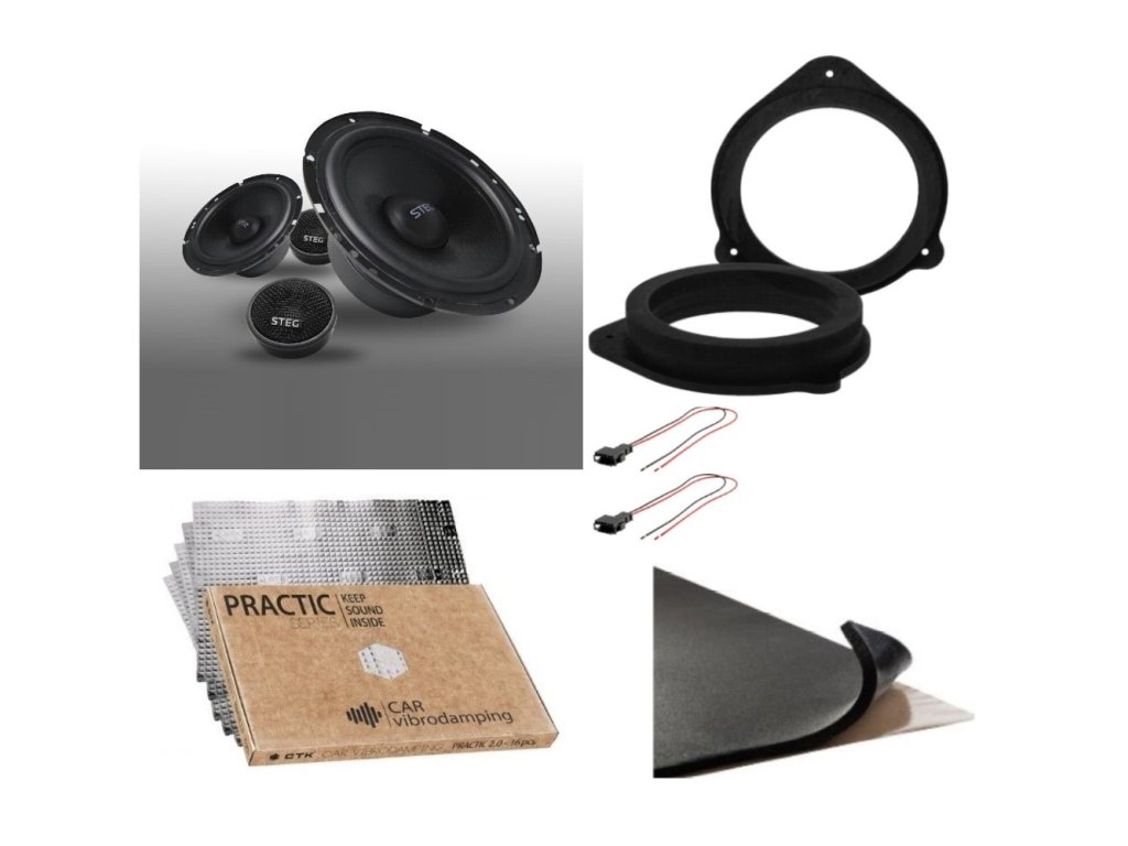 Set č.3 - Steg SQL 650C do vozidla Audi A4 B7. Jedná se o velice povedený set v poměru kvalita/cena/výkon od značky Steg. Použivá se většinou do instalací, kde se nahrazují originální reproduktory za nové 2 pásmové komponentní ve dveřích. Díky jednoduchému zpracování je jejich cena velice přijatelná. Jsou vhodné na výkon z autorádia, ale doporučujeme na zesilovač o výkonu 40-70W RMS na kanál. Výhodou jsou velice kompaktní kabelové výhybky pro výškové reproduktory, se kterými nemáte žádný problém při instalaci. Základní balíček pro vytlumení dveří, který je součástí setu.