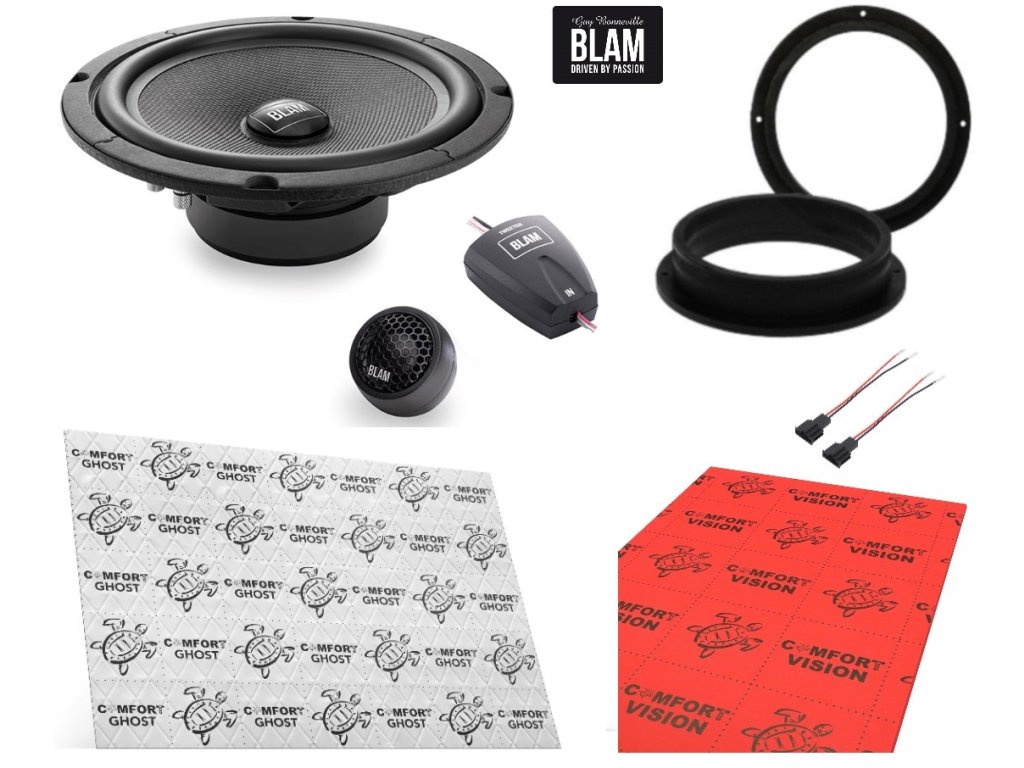 BLAM Relax 200 RS do vozidla Audi. Jedná se o základní řadu reproduktorů od značky Blam. Používá se většinou do instalací, kde se nahrazují originální reproduktory za nové 2 pásmové komponentní ve dveřích. Díky jednoduchosti, ale zároveň i genialitě zpracování je cena velice přijatelná. Jsou vhodné na výkon z autorádia. Plnohodnotné výhybky pro výškový reproduktor, zajistí krásný, čistý a hedvabný zvuk. 200 mm středobasový reproduktor byl navržený tak, aby zvládal frekvenční pásmo v plném rozsahu od 60 Hz. Spodní (basové) pásmové je silné, rázné a přesné. Střední pásmo je na vskutku dobré úrovní. Velikost vyhýbek pro výškový reproduktor není příliš velká a proto nemáte žádný problém při instalaci. Balíček pro vytlumení a odhlučnění dveří je součástí setu.