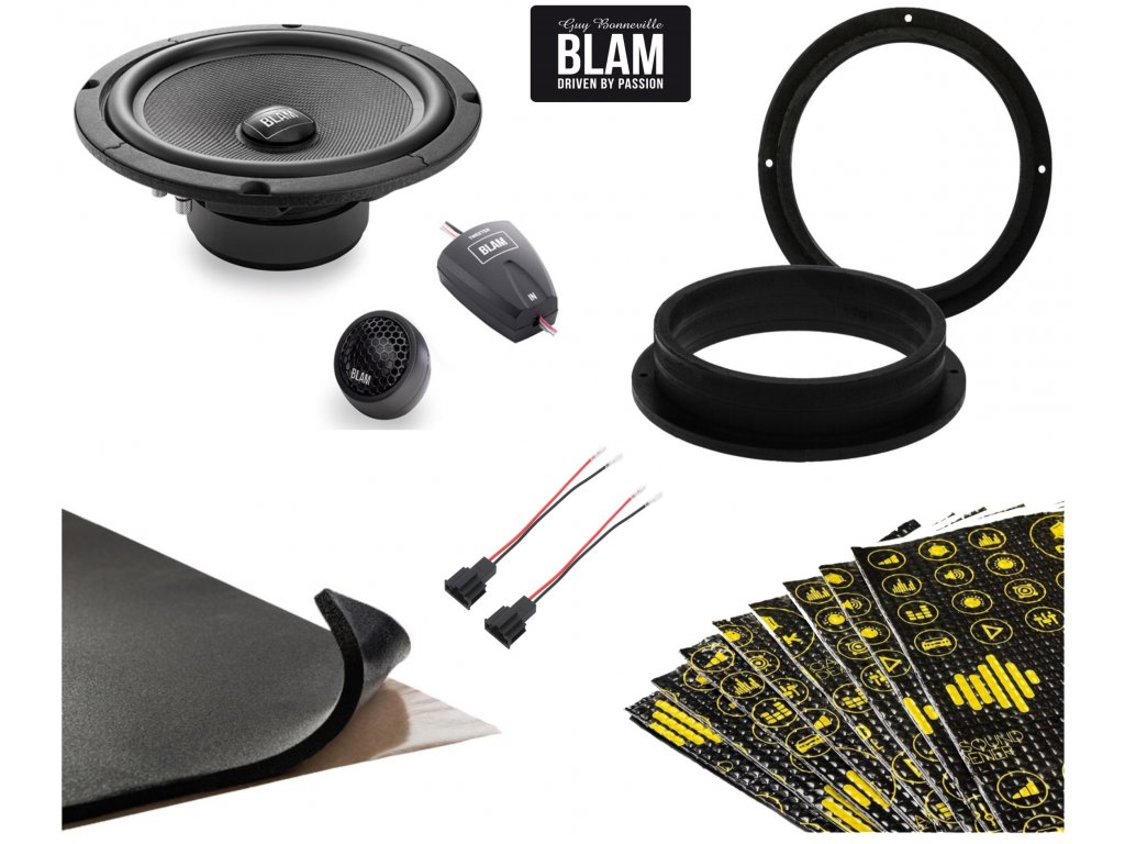 Set č.4 - BLAM Relax 200 RS do vozidla Audi Q3 8U. Jedná se o základní řadu reproduktorů od značky Blam. Používá se většinou do instalací, kde se nahrazují originální reproduktory za nové 2 pásmové komponentní ve dveřích. Díky jednoduchosti, ale zároveň i genialitě zpracování je cena velice přijatelná. Jsou vhodné na výkon z autorádia. Plnohodnotné výhybky pro výškový reproduktor, zajistí krásný, čistý a hedvabný zvuk. 200 mm středobasový reproduktor byl navržený tak, aby zvládal frekvenční pásmo v plném rozsahu od 60 Hz. Spodní (basové) pásmové je silné, rázné a přesné. Střední pásmo je na vskutku dobré úrovní. Velikost vyhýbek pro výškový reproduktor není příliš velká a proto nemáte žádný problém při instalaci. Balíček pro vytlumení dveří je součástí setu.