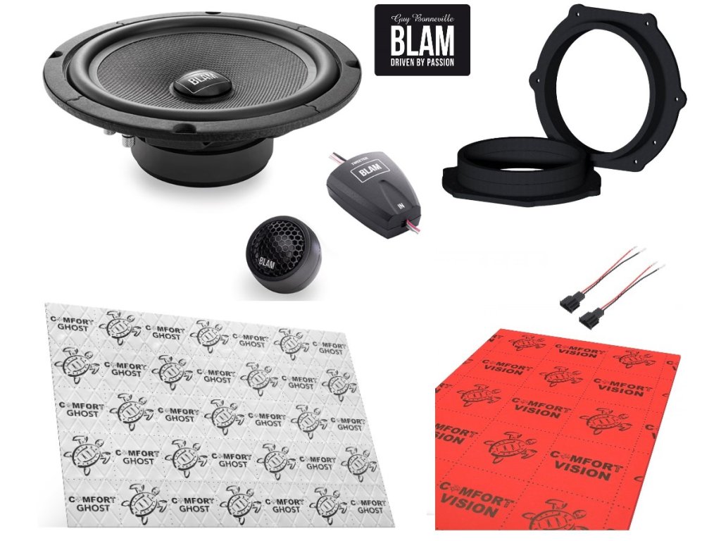 BLAM Relax 200 RS do vozidla Audi. Jedná se o základní řadu reproduktorů od značky Blam. Používá se většinou do instalací, kde se nahrazují originální reproduktory za nové 2 pásmové komponentní ve dveřích. Díky jednoduchosti, ale zároveň i genialitě zpracování je cena velice přijatelná. Jsou vhodné na výkon z autorádia. Plnohodnotné výhybky pro výškový reproduktor, zajistí krásný, čistý a hedvabný zvuk. 200 mm středobasový reproduktor byl navržený tak, aby zvládal frekvenční pásmo v plném rozsahu od 60 Hz. Spodní (basové) pásmové je silné, rázné a přesné. Střední pásmo je na vskutku dobré úrovní. Velikost vyhýbek pro výškový reproduktor není příliš velká a proto nemáte žádný problém při instalaci. Balíček pro vytlumení a odhlučnění dveří je součástí setu.