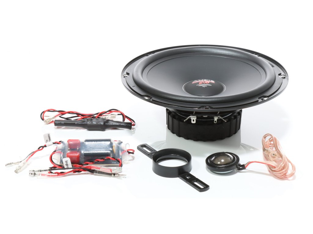 - 1 pár komponentních reproduktorů Audio System R 200 EM EVO 2 (2x středobas, 2x výška, výhybky)