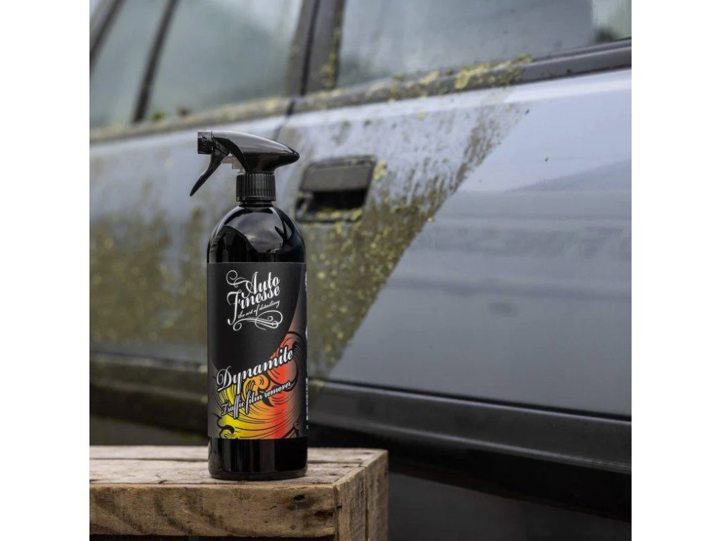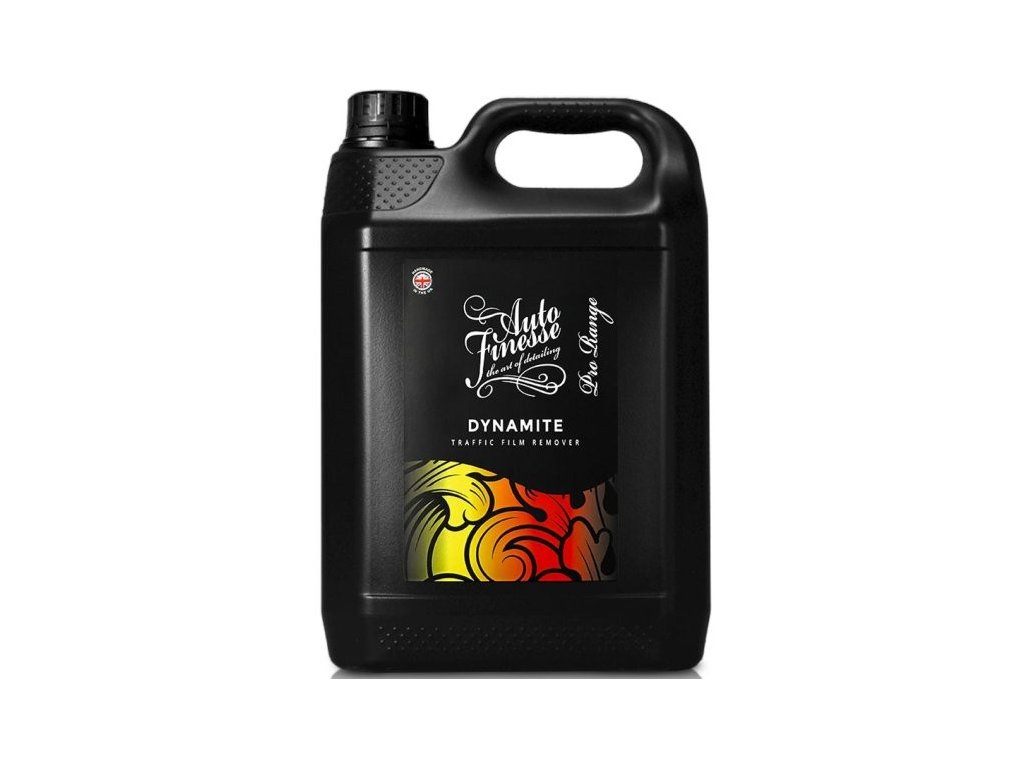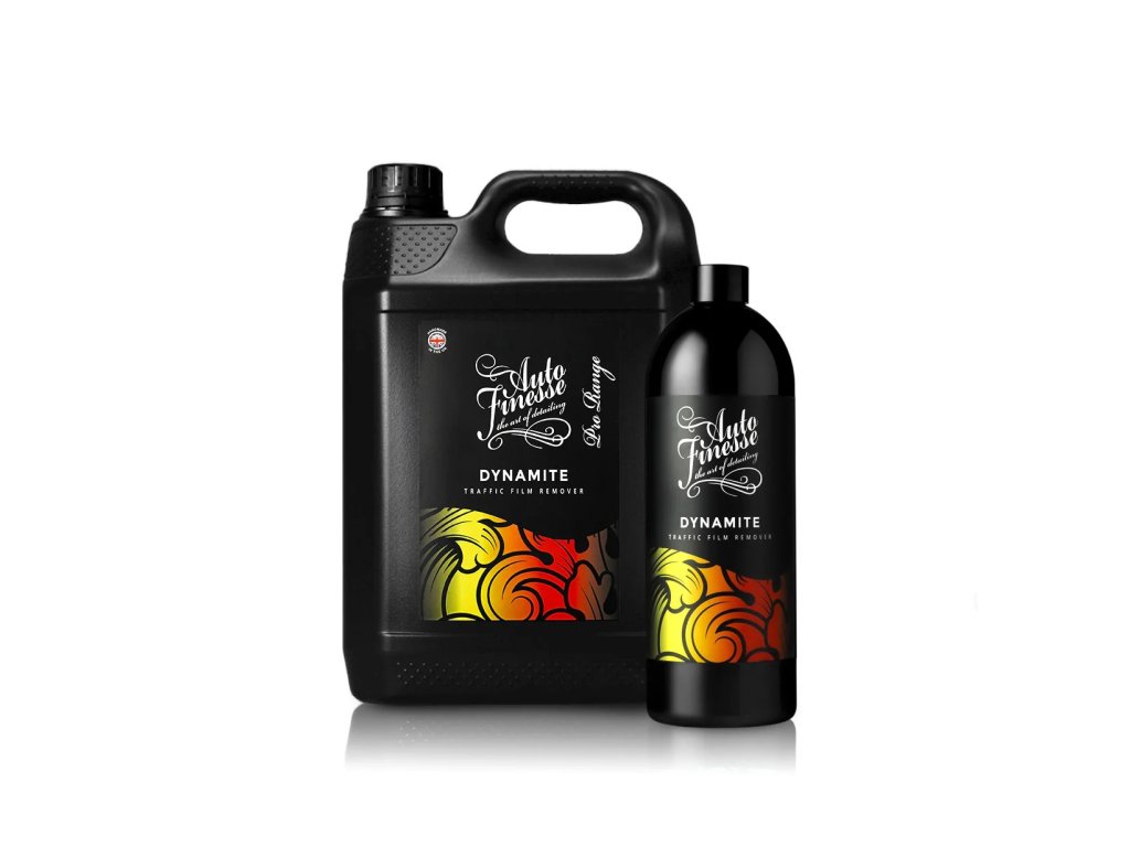Auto Finesse Dynamite Traffic Film Remover je koncentrát, přípravek na předmytí automobilu, vhodný k ředění v poměru 1:5 až 1:10. Koncentrované citrusové předmytí je vhodné pro odstranění silničního znečištění a hmyzu z vnějších povrchů vozidla, a to jak z laku, plastu, skla, alu kol atd. Ačkoliv je Dynamite velmi efektivní, je také velmi šetrný k naneseným voskům a sealantům právě díky možnosti ředění. Dynamite Traffic Film Remover je ideální pro nejbezpečnější způsob mytí, pro bezkontaktní mytí. Díky používání aktivního předmytí udržíte kondici laku stále ve výborném stavu. Tak jako všechny produkty Auto Finesse, tak i Dynamite patří mezi profesionální produkty určené pro zkušené detailery. Díky vysoké efektivitě a snadnosti aplikace dosáhne s tímto přípravkem skvělých výsledků i začátečník.
