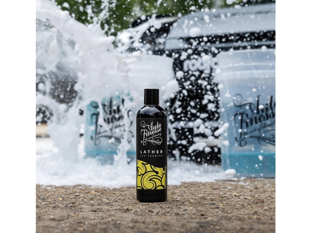 Auto Finesse Lather pH Neutral Car Shampoo je pH neutrální autošampon s vysokou lubrikační schopností, který je zcela bezpečný k dříve naneseným voskům nebo keramické ochraně. Tento šampon můžete použít také na mytí matných laků, nebo v ředění 1:10000 jako lubrikant pod clay. Bezpečné mytí automobilu je nejdůležitějším krokem pro detailery, což je důvod, proč u Auto Finesse věnovali spoustu času vývoji tohoto pH neutrálního šamponu. Auto Finesse Lather je autošampon s příjemnou vůní mandarinky. Obsahuje pH neutrální povrchově aktivní látky a vysoce koncentrovaná maziva. V kombinaci se správnou mycí technikou získáte silný čisticí výkon. Pěna autošamponu není v rozporu s vosky nebo sealanty, díky čemuž maximalizuje jejich výkon a životnost. Lather svou lubricitou patří k tomu nejlepšímu a stává se tak povinnou výbavu v péči o měkké laky, které jsou náchylné na poškrábání. Lather je koncentrát, který se aplikuje ve zředěné podobě s vodou. Neobsahuje žádné další přísady, které ovlivňují lesk. Lather můžete použít také na mytí matných laků. Díky svým čisticím vlastnostem zvládne oživit již zanešené voskové vrstvy a tím prodloužit jejich efektivitu a životnost. Tak jako všechny produkty Auto Finesse, tak i Lather patří mezi profesionální produkty určené pro zkušené detailery. Díky vysoké efektivitě a snadnosti aplikace dosáhne s tímto přípravkem skvělých výsledků i začátečník.
