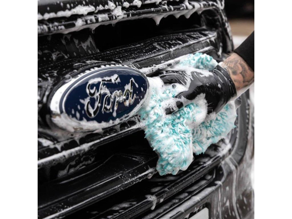 - Mikrovláknovou mycí rukavicí naberte směs vody s šamponem a rovnými pohyby umývejte karoserii směrem shora dolů
