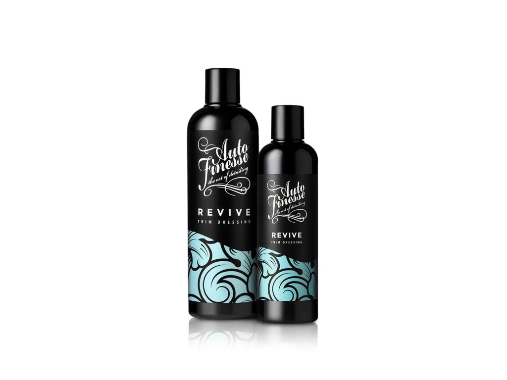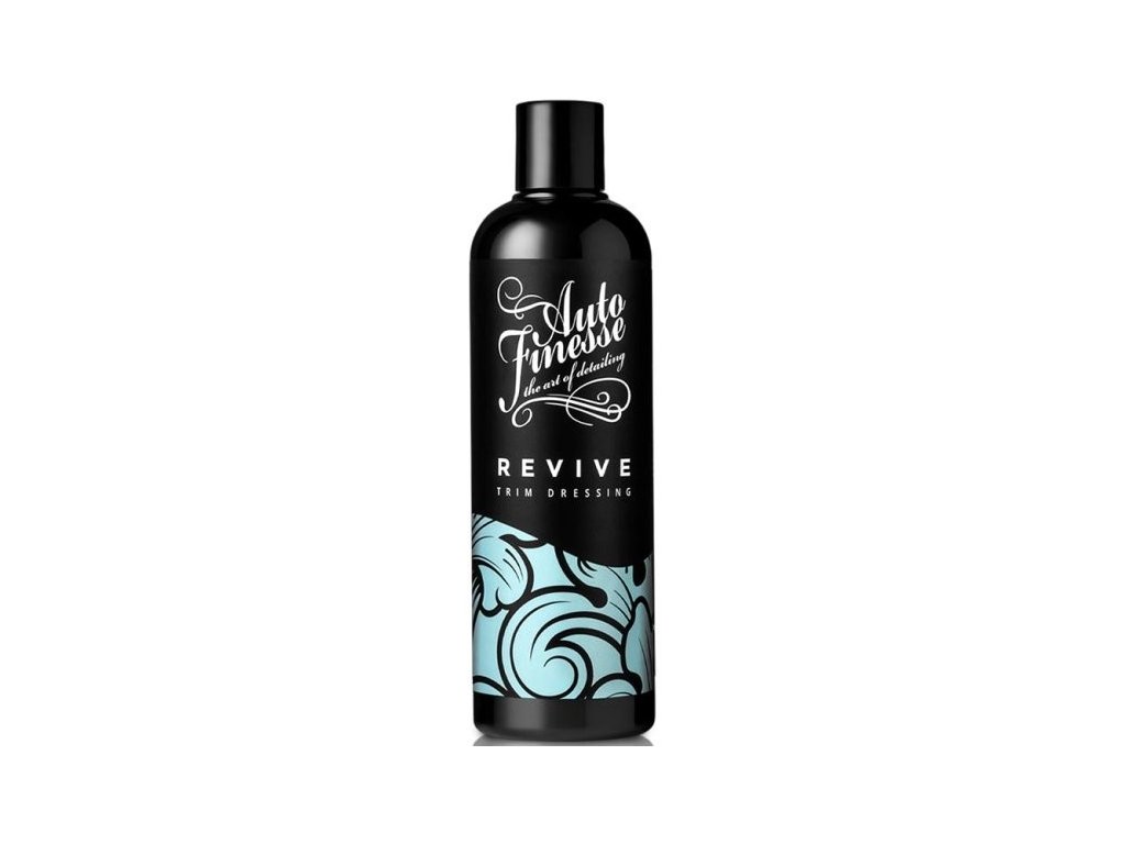 Auto Finesse Revive Trim Dressing je moderní ochrana a oživovač plastů a vinylových částí automobilu s hydrofobním efektem. Vybledlé plastové lišty jsou s použitím Auto Finesse Revive Trim Dressing minulostí. Auto Finesse Revive ztmavuje a obnovuje barvu plastových a gumových lišt, zanechává jemný saténový povrch, který je suchý na dotek, ale mokrý na pohled. Revive je založen na nejnovější technologii silikon-polymerů, a to s cílem obnovit a chránit povrch. Revive nastavuje nový standard v ošetření plastů. Silikonové polymery chrání plasty před škodlivým UV zářením a přináší hydrofobní vlastnosti, které pomáhají odrazit nepříznivé povětrnostní vlivy. Po použití Revive působí všechny plasty a gumové lišty "jako nové".Tak jako všechny produkty Auto Finesse, tak i Revive patří mezi profesionální produkty určené pro zkušené detailery. Díky vysoké efektivitě a snadnosti aplikace dosáhne s tímto přípravkem skvělých výsledků i začátečník.