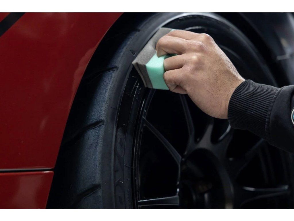 - Naneste pár kapek přípravku na pěnový aplikátor a rozetřete po povrchu pneumatiky a ponechejte cca 5 minut uzrát