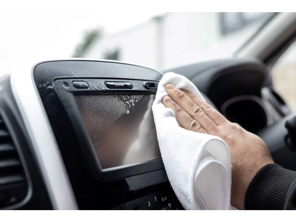 - Na místa, která jsou hůře dostupná, nastříkejte na mikrovláknovou utěrku a čistěte