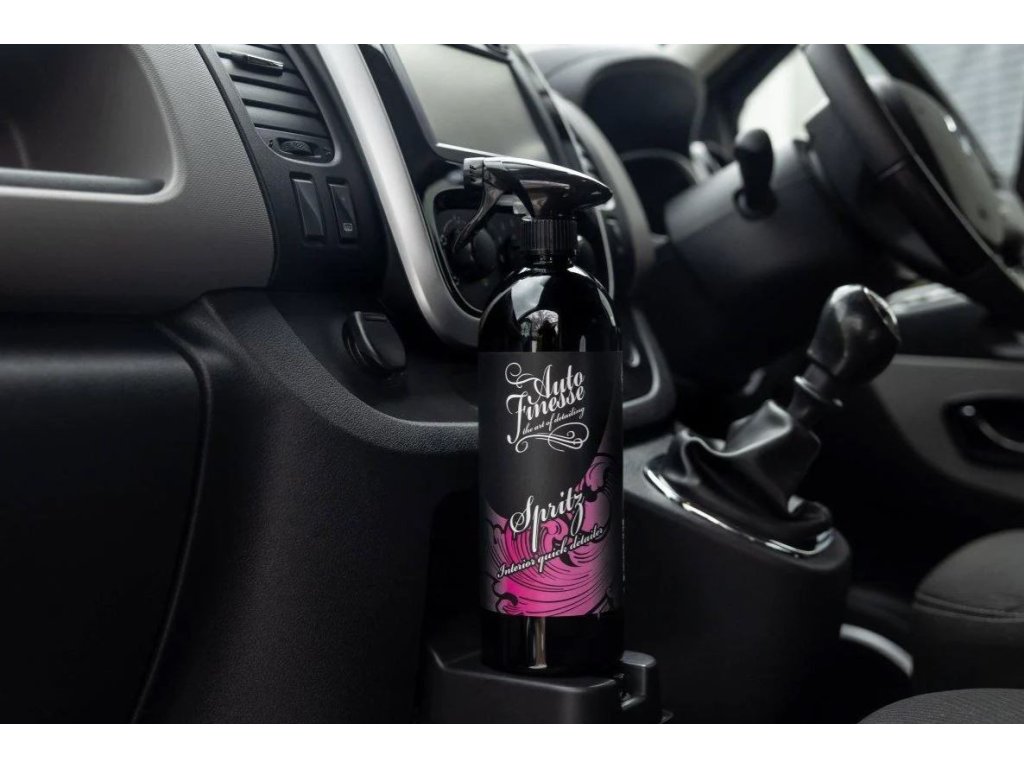 Auto Finesse Spritz Interior Detail Spray je kvalitní detailer s UV inhibitory a antistatickými přísadami. Auto Finesse Spritz přichází na řadu tehdy, když si chcete udržet interiér automobilu ve stavu, v jakém opustil továrnu automobilky. Spritz je vhodný pro všechny povrchy v interieru. Je určen k čištění lehce znečištěných povrchů a pro ochranu interiéru, a to plastů a vinylu před UV zářením a proti nadměrnému usazování prachu. Jeho antistatické vlastnosti okamžitě zabraňují dalšímu usazování prachových částic, interiér tak zůstává mnohem déle čistý. Spritz je na vodní bázi a zanechává veškeré povrchy originální, přirozeně matné a nelepkavé. Jedná se o nejrychlejší způsob, jak interiér vozu udržet čistý a bez poskvrny. Je zcela bezpečný pro použití na všech plastových, vinylových, gumových, kovových i kožených částech v interiéru auta. Je také šetrný ke všem typům dotykových a LCD obrazovek. Ačkoliv se materiály v interiérech aut výrazně změnily, je nutné se o ně starat, aby zůstaly stále jako nové. Spriz je interiérový detailer 21. století, který je navržen tak, aby dokonale pečoval o moderní plastové povrchy. Tak jako všechny produkty Auto Finesse, tak i Spritz patří mezi profesionální produkty určené pro zkušené detailery. Díky vysoké efektivitě a snadnosti aplikace dosáhne s tímto přípravkem skvělých výsledků i začátečník.
