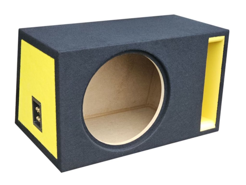 Reproduktorová ozvučnice typu bassreflex. Vyrobeno z MDF o tloušťce 20 mm. Otvor pro jeden reproduktor o průměru 38 cm, objem 77 litrů. Barva potahu: Černá – boky a port v žluté barvě