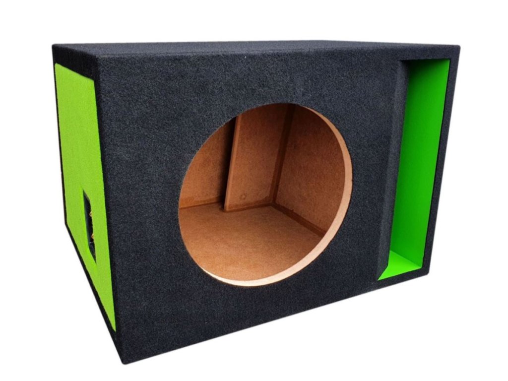 Reproduktorová ozvučnice typu bassreflex. Vyrobeno z MDF o tloušťce 18 mm. Otvor pro jeden reproduktor o průměru 30 cm, objem 66 litrů. Barva potahu: Černá – boky a port v zelené barvě