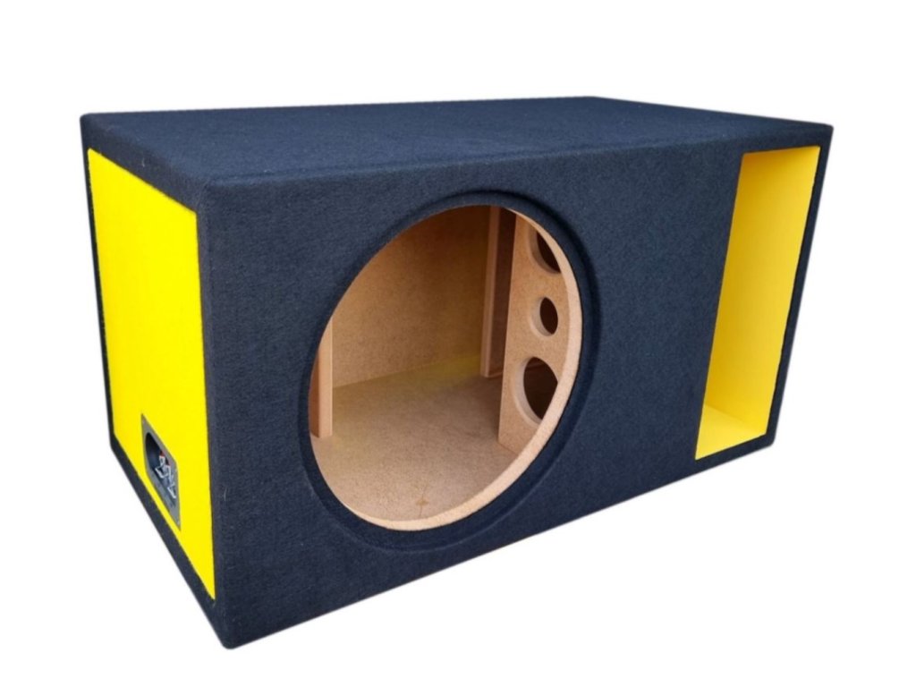 Reproduktorová ozvučnice typu bassreflex. Vyrobeno z MDF o tloušťce 22 mm. Otvor pro jeden reproduktor o průměru 38 cm, objem 125 litrů. Barva potahu: Černá – boky a port ve žluté barvě
