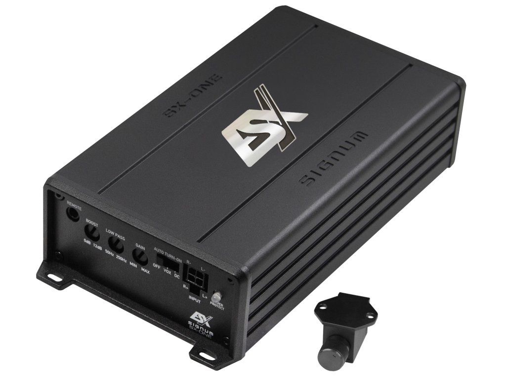 S řadou SIGNUM SX Mini rozšiřuje ESX své rozsáhlé portfolio autorádií o čtyři zbrusu nové zesilovače MINI třídy D, které nastavují nové standardy svými minimálními rozměry, vynikajícím zvukem a překvapivě vysokým výkonem až 600 wattů RMS. Tyto kompaktní zesilovače využívají nejmodernější technologii třídy D, která díky své vysoké účinnosti umožňuje nízkou tvorbu tepla, a tím umožňuje mimořádně prostorově úsporný design – šířka pouhých 83 mm a výška 38 mm. Díky tomu jsou tyto mini zesilovače ideální pro diskrétní instalace, ať už pod sedadlem, v bočním panelu nebo v zavazadlovém prostoru. Obzvláště praktická funkce: Modely SX-FIVE, SX-TWO a SX-ONE jsou dodávány s dálkovým ovládáním úrovně basů. To umožňuje pohodlné nastavení basů ze sedadla řidiče kdykoli – ideální pro ty, kteří si cení flexibility a maximální kontroly při každodenním používání.