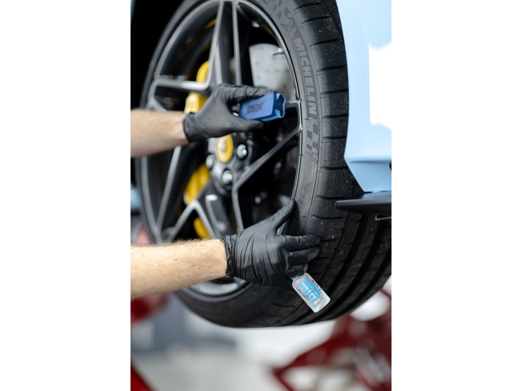 - Velmi důležitý krok je důsledné odmaštění kol, to provádějte pomocí přípravku Gyeon Q²M Prep a mikrovláknové utěrky s dlouhým vláknem Purestar Grass Buffing Towel