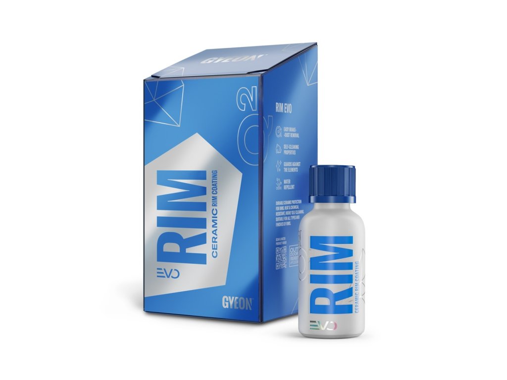 Gyeon Q² Rim EVO je špičková keramická ochrana na ALU kola. Na trhu jsou k dispozici různé typy ráfků, např. lakované za mokra, práškově lakované, eloxované nebo leštěné. Gyeon Q² Rim EVO je vhodným ochranným přípravkem pro všechny typy kol. Díky vylepšenému složení verze EVO se ještě zvýšily samočisticí vlastnosti, což vede k menšímu usazování nečistot a brzdového prachu, a to znamená jediné, potřeba častého mytí už není nutná. Kola samotná jsou nejvíce vystavená teplotním výkyvům hned po motorovém prostoru a výfuku, tyto povrchy jsou vystaveny rychlé změně teploty. Gyeon Q² Rim EVO má odolnost přesahující 800 °C bez narušení jeho vlastností, navíc nepřidává lesk žádnému povrchu, ale dodává hloubku a ztmavující efekt jakékoli barvě nebo povrchové úpravě. U všech keramických povlaků EVO zaručuje Gyeon snadnou aplikaci a až o 50 % větší trvanlivost a odolnost při každodenním používání vozidla. Gyeon Q² Rim EVO vyžaduje pouze jednu silnou vrstvu, pokud ale chcete prodloužit jeho trvanlivost, můžete povlak vrstvit. Keramický povlak na kola lze aplikovat na všechny povrchové úpravy lesklých i matných ráfků.