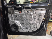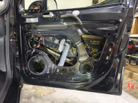 2 DIN jednotka Isudar T68B vč. rámečku a CanBus. Přední dveře se kompletně vyltumily, odhlučnily a nainstalovaly se nové 165mm komponentní reproduktory Excursion RX 6C ECO. Samozřejmě se nezapomnělo na vnitřní stranu čalounění.