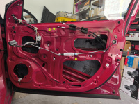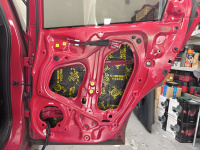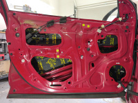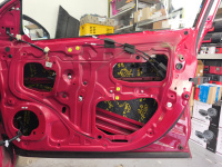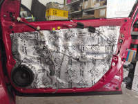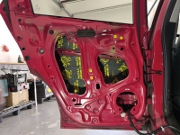 Všechny dveře dostaly kompletní tlumení a odhlučnění od značky Comfortmat a to: Vespa, Integra, Ghost a na čalounění pak CTK Practic 20, přes který se ještě aplikoval Comfortmat Soft Wave 15.