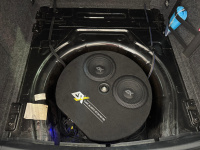 Majitel chtěl pořádnou dávku basů ve vozidle, s tím že nemá rezervní kolo a na jeho místo přišel aktivní subwoofe ESX DBX800A + dálkové ovládání k rukám řidiče pro pohodlnou regulaci basů.