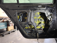 Tlumení a odhlučnění všech dveří. Jako první vrstva se použil Comfortmat Vespa, přes který se dále aplikoval Comfortmat Integra. Na krycí vrstvu se použil antivibrační materiál Comfortmat Ghost. Na vnitřní stranu čalounění pak Ghost, přes který dále přišel Soft Wave 15.