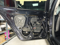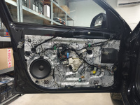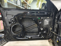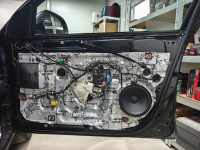 Petr chtěl ještě rovnou vyměnit originální středové reproduktory za nové Musway ML3M, na které se vytiskli pouze redukční rámečky, ze kterých rázem vznilky reproduktory Plug & Play. Všechny dveře se samozřejmě vytlumily a dohlučnily materiály od značky Comfortmat. Byl použit Panther, Integra, Ghost, Soft Wave. Nějaké zádrhely zde byly a to díky předchozímu zásahu majitele, což se podepsalo na uthaných částech na vnitřní straně čalounění.