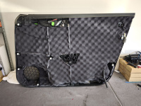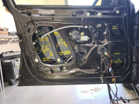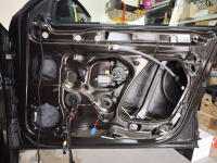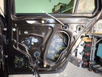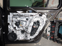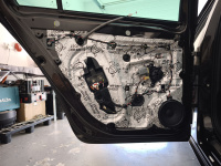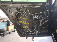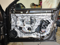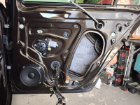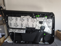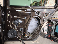 Samozřejmostí jsou pak kompletně vytlumené a odhlučněné dveře pomoci antivibračních materiálů Comfortmat Vespa, přes který se pak dále aplikoval Comfortmat Integra. Jako poslední a krycí vrstvou je zde Comfortmat Ghost. Na vnitřní stranu čalounění se pak aplikoval jako druhá vrstva Comfortmat Soft Wave 15.