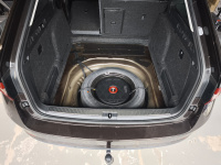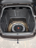 O pořádnou porci basů se nově stará aktivní subwoofer schovaný v rezervním kole od značky Awave model AST11TV5. Dále si majitel vozidla přál bezdrátový Apple CarPay + Android Auto. To se také udělalo....