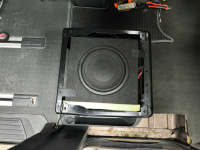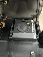 Nyní nastal čas na dodělání subwooferu. Vybral se subwoofer od značky Helix IK EC10.1-DVC2 vyrobený přímo do vozidel VW T5 pod sedadlo řidiče či spolujezdce s mono digitálním zesilovačem mini rozměrů od značky Excursion - model PXA 1K včetně dálkového ovládání do palubní desky.