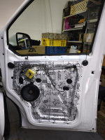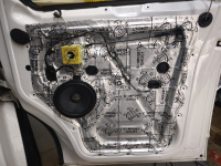 Výměna předních reproduktorů + kompeltní vytlumení a odhlučnění jak dveří, tak čalounění. Zde se zvolila varianta reproduktorů Plug & Play 200mm od značky Musway model CSVT8.2C. Zvolené materiály pro vytlumení a odhlučnění dveří byly použity: Comfortmat Vespa (jako první vrstva), přes kterou se aplikoval Comfortmat Integra v.2 (druhá vrstva v pořadí). Jako poslední a krycí vrstva, padla volba na Comfortmat Ghost. Ten se dále použil i mna vnitřní stranu čalounění, přes který se pak aplikoval Comfrtmat Bitosoft 10.