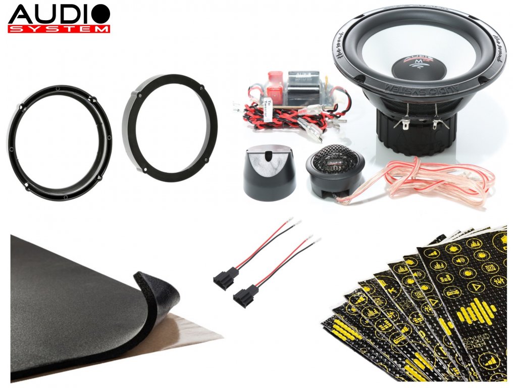 - 1 pár komponentních reproduktorů Audio System M 165 EM EVO 2 (2x středobas, 2x výška, 2x výhybka)