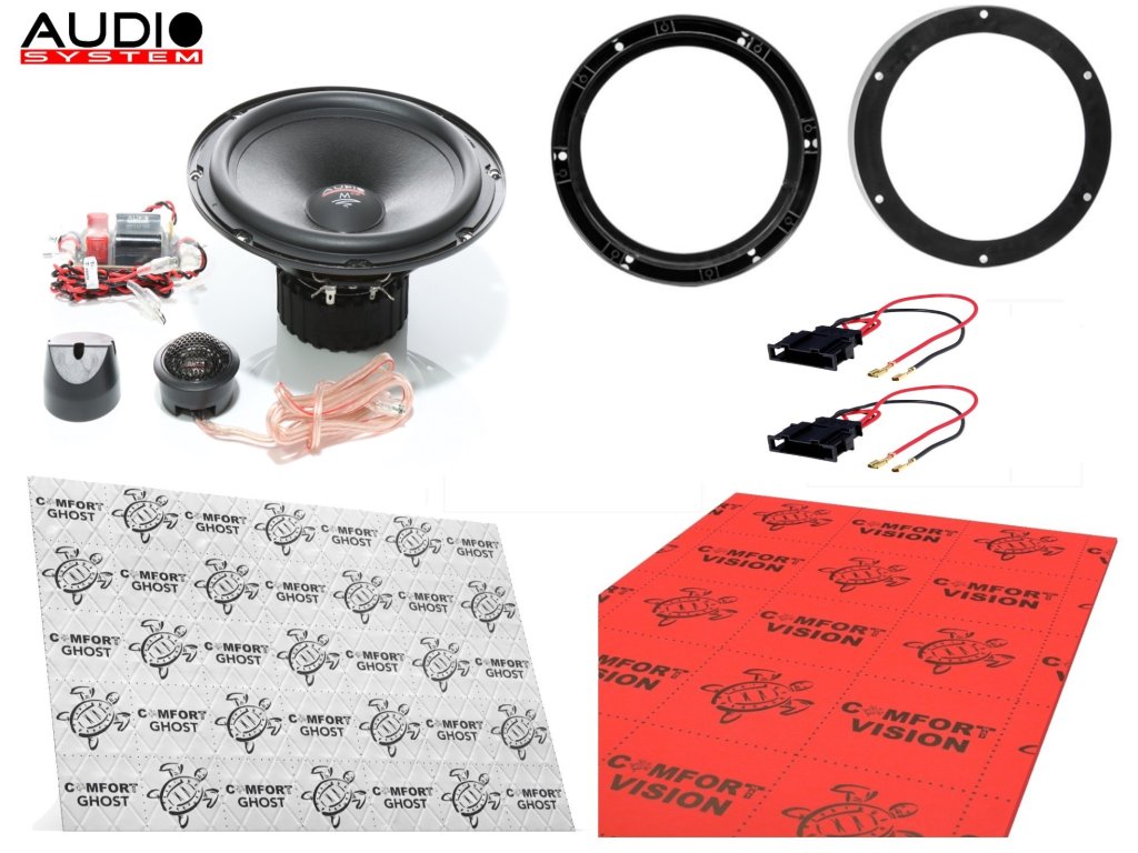 - 1 pár komponentních reproduktorů Audio System M 200 EVO 2 (2x středobas, 2x výška, 2x výhybka)