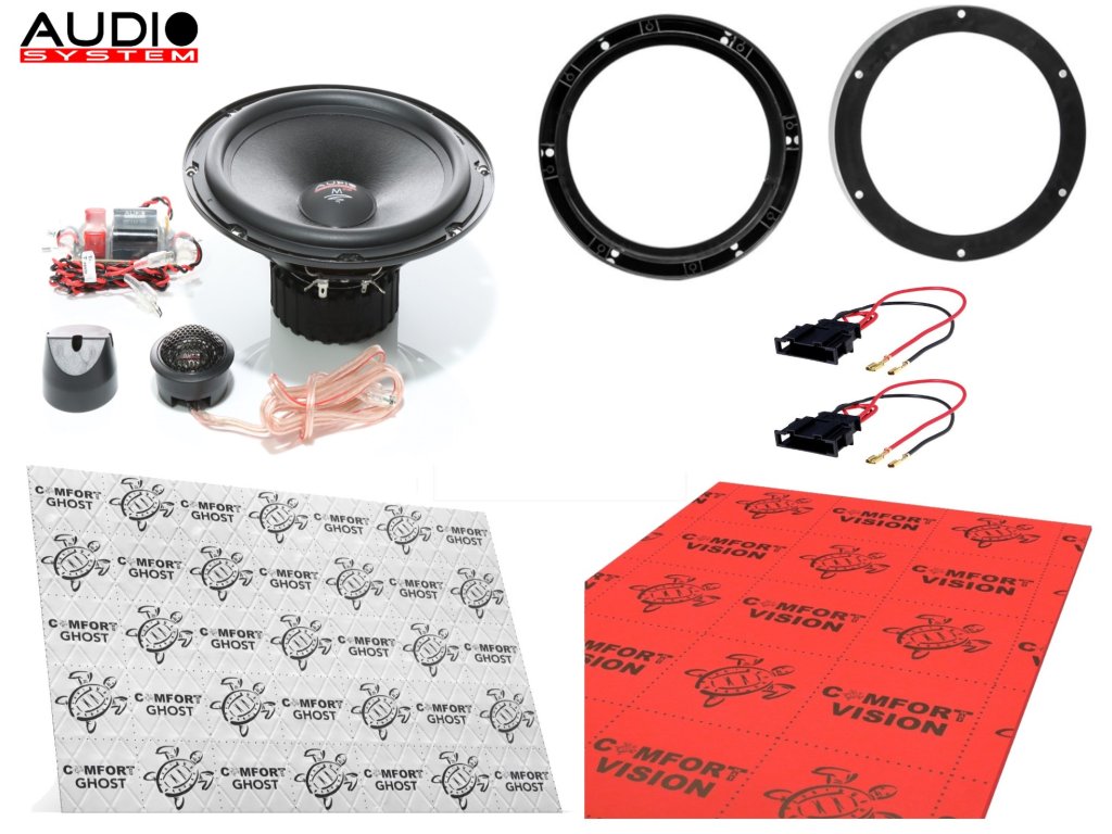 - 1 pár komponentních reproduktorů Audio System M 200 EVO 2 (2x středobas, 2x výška, 2x výhybka)