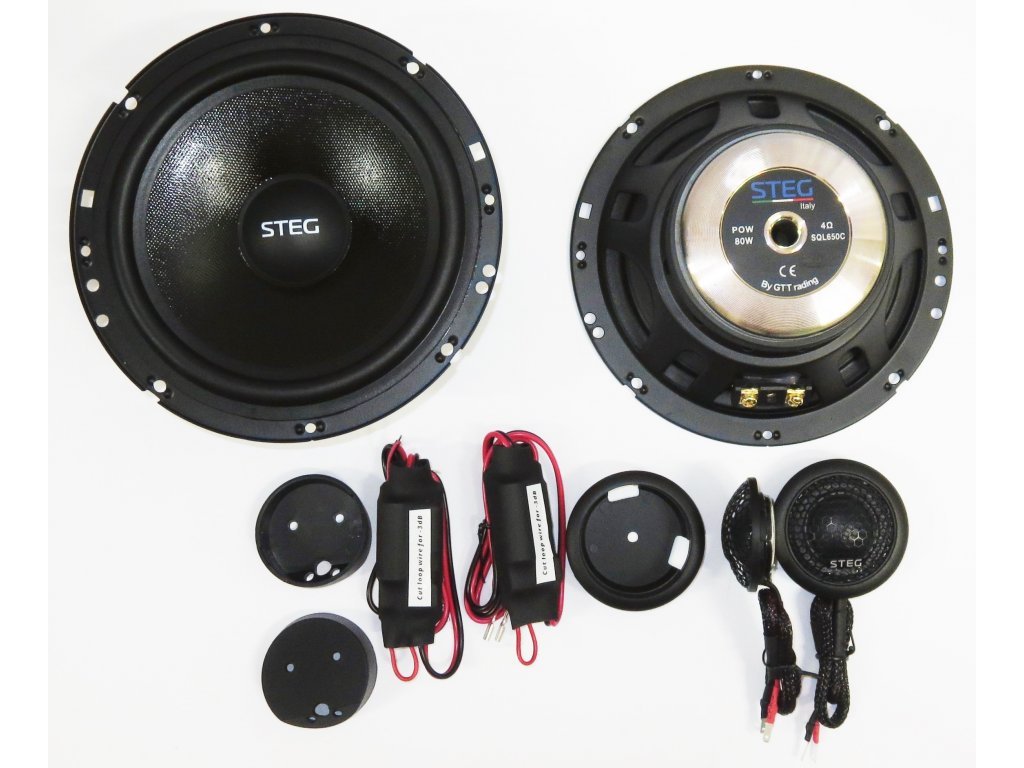 - 1 pár komponentních reproduktorů Steg SQL 650C (2x středobas, 2x výška, 2x výhybka)